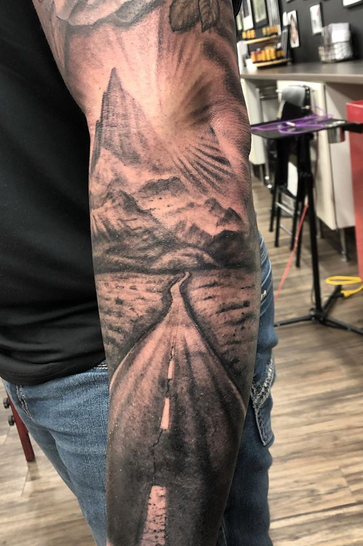 Mountains, beaches, or your favorite place where you grew up. Landscape and scenery tattoos have more than just a beautiful look they can also have significant meaning and be loaded with amazing subject matter!